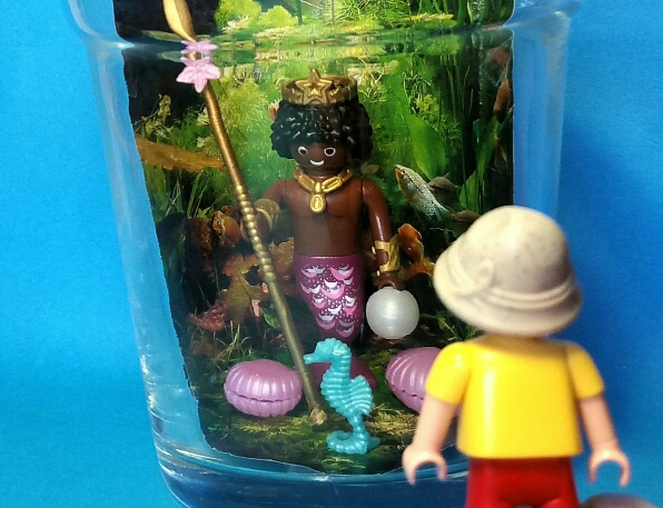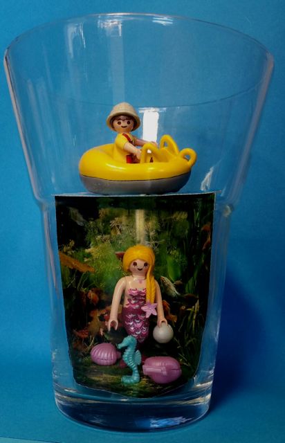 Da Aquaria und Aquarius Meermenschen sind, müssen sie ab und zu im Wasser abtauchen. Dazu gehen sie in ein spezielles Aquarium für Meer(jung)frauen- und männer. Heute kommen Seppel und Tante Hannelore mit. Am besten gefällt es Seppel, daß man mit dem Gummiboot auf dem Aquarium herumfahren darf.