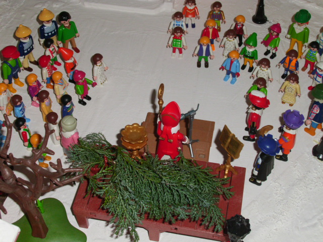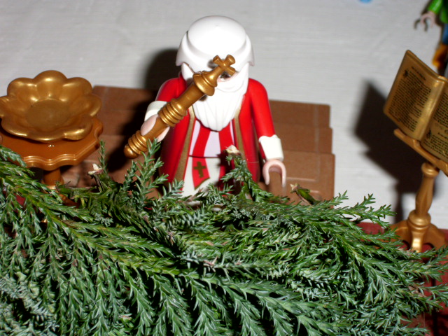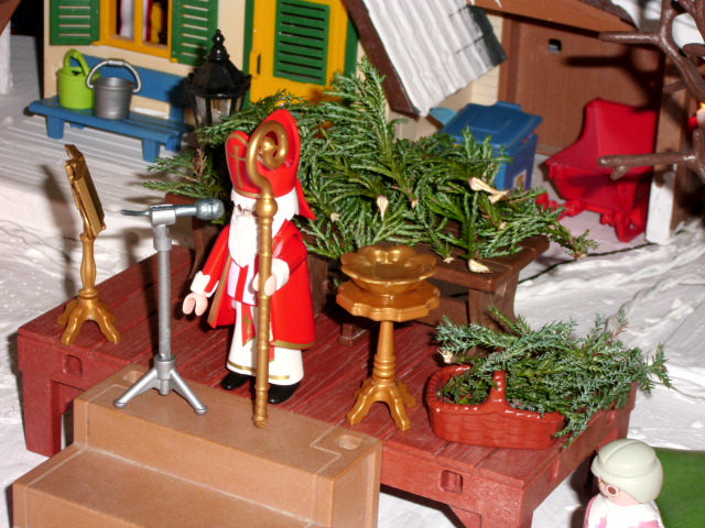 Dein Altar auf dem Dorfplatz, der Bischof, die Weihwasserschale, ...