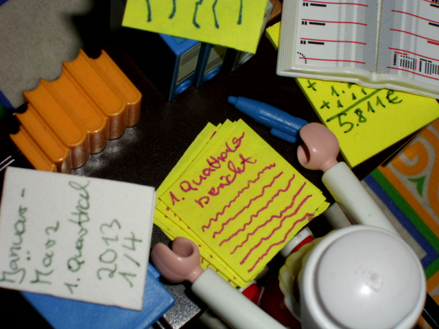 Bevor der Weihnachtsmann in die Osterferien geht, hat er noch den Bericht für das erste Quartal fertig gestellt.