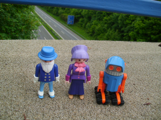 Gestern haben die drei einen Ausflug in den Wald gemacht und sind irgendwie auf einer Brücke bei der Autobahn gelandet.
