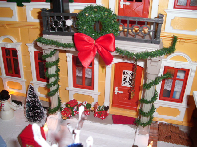 - Der festlich geschmückte Eingang der Weihnachtsmann-Villa.