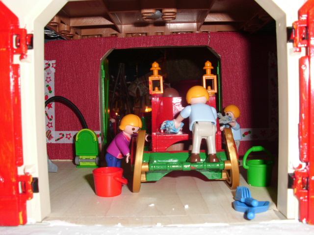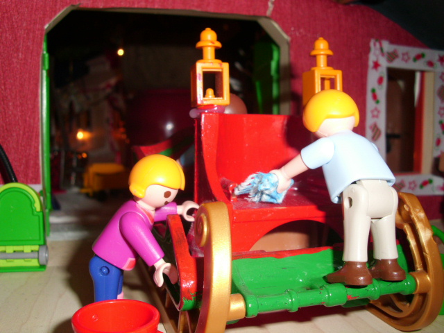 - Die Elfen sind damit beschäftigt, den Schlitte zu polieren und zu säubern.