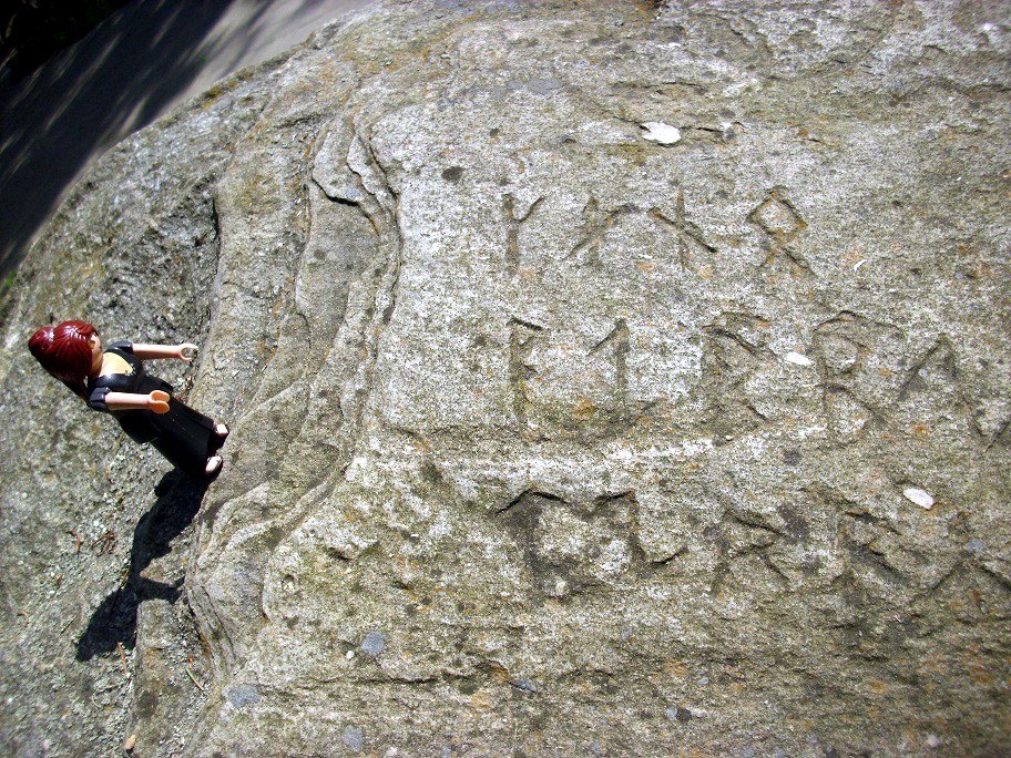 Ischade: „Schau mal, da sind Runen auf dem Stein. Was steht da… Also das ist ein F?“