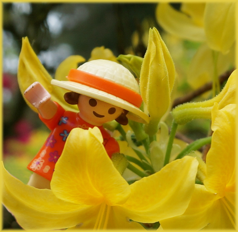 Die gelbe Rhododendronblüte macht sich auch gut: