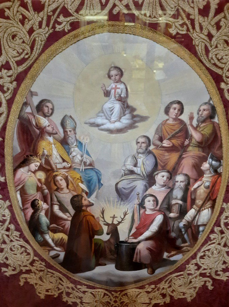 Wallfahrtsfahne mit dem Bildnis der 14 Nothelfer