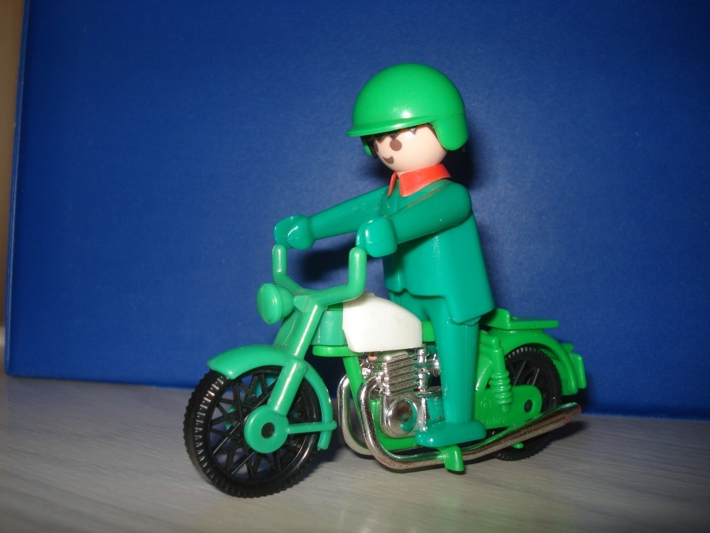 Ich freue mich sehr über dieses alte Klicky-Motorrad mit Fahrer und ich werde es