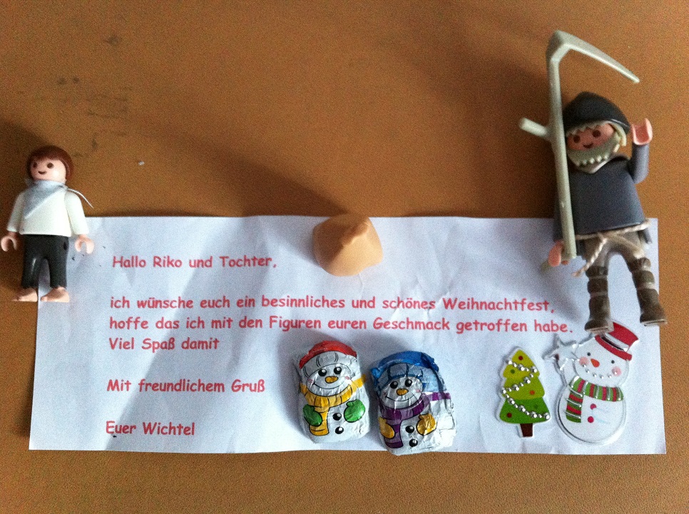 Endlich möchte ich hier auch unsere erhaltenen Wichtel präsentieren. Leider war ich die letzten zwei Tage krank, so dass ich das bisher noch nicht geschafft habe.