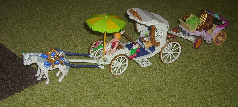 Mein Neunjährige hat zu Weihnachten eine Kutsche bekommen und kam daher auf die Idee, diese mit der schon vorhandenen zu einer Doppelkutsche zu erweitern.