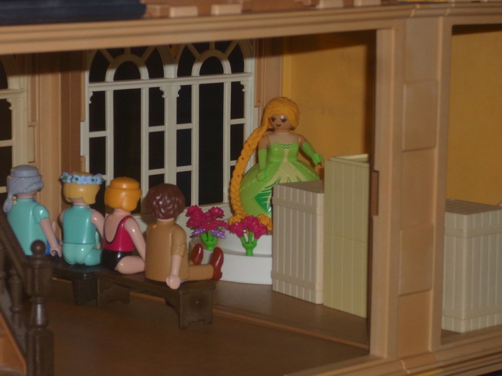Sie hat auch die gesamte Männerwelt aus der Burg verbannt, eine gute Entscheidung, so können sich die Damen auf das wichtige im Leben konzentrieren, Kronen und anderer Haarschmuck :king
