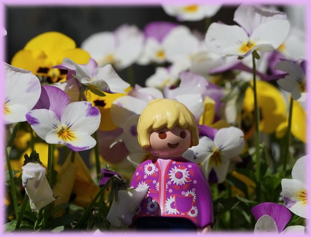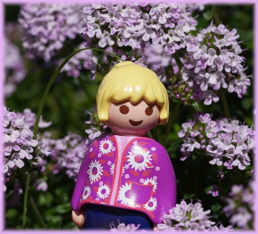 Ok, das ist jetzt kein Thymian - aber hübsch sieht die Figur in den Stiefmütterchen trotzdem aus.