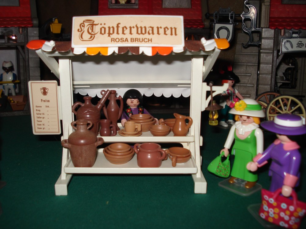Verkauf der Töpferwaren auf dem Markt.