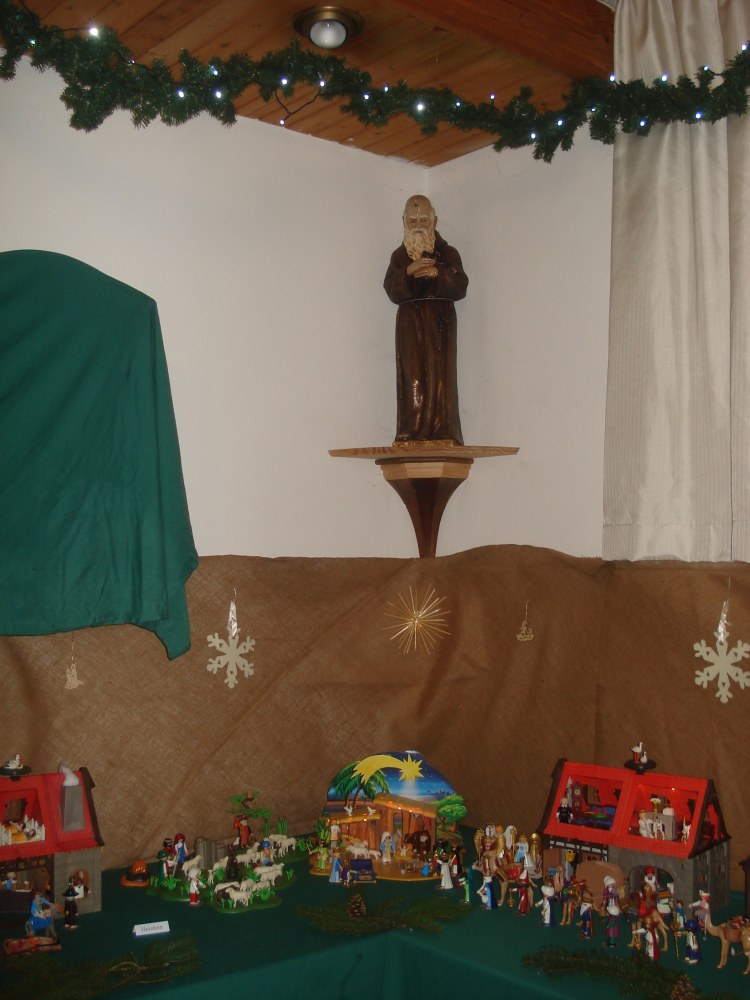 Krippe unter der Bruder Konrad Figur