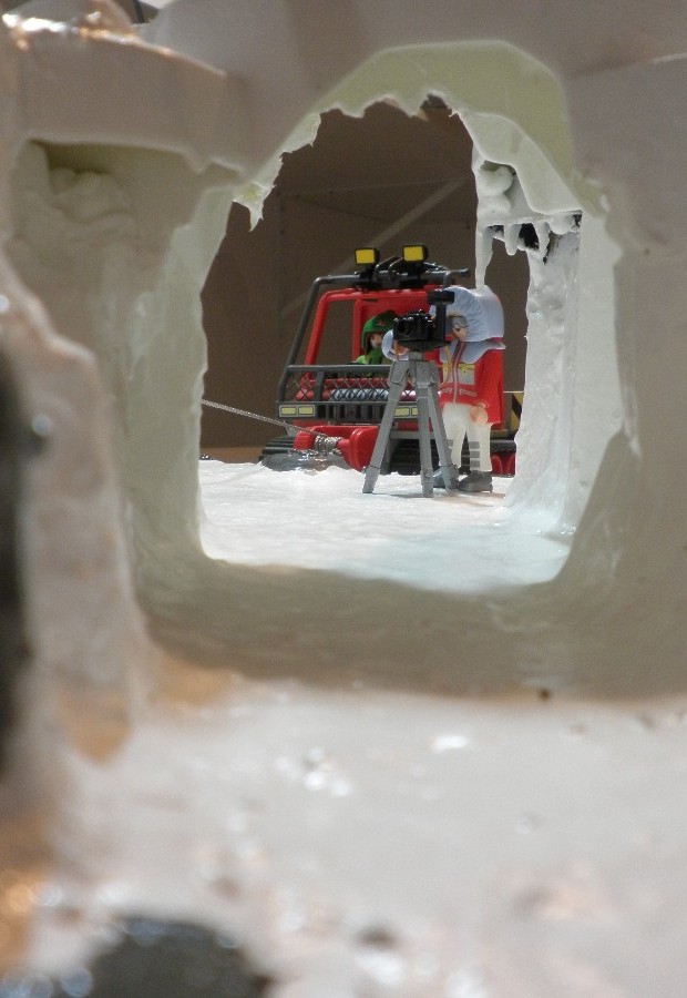 Nur noch ein kleines Stück weiter durch den Eiskanal und wir haben die Wissenschaftler an der Fundstelle erreicht !