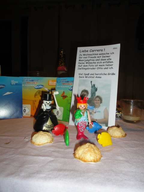 An dieser Stelle: Die Wichtel von der Königsnichte und mir. Unser beider Dank geht an Unbekannt für die tollen Wichtel. Die Königsnichte bekam eine "Königsnichte aus Hartberg". Die Personalakte meines Wichtels fällt unter eine so hohe Sicherheitsstufe, dass selbst ich als Regattaleiter sie nicht einsehen kann. Er hat spontan begonnen, Sicherheitslücken im Regatta-Hauptquartier zu suchen.