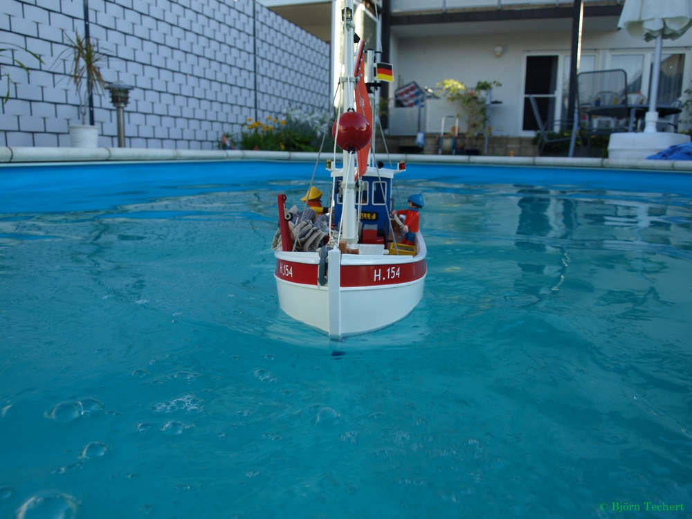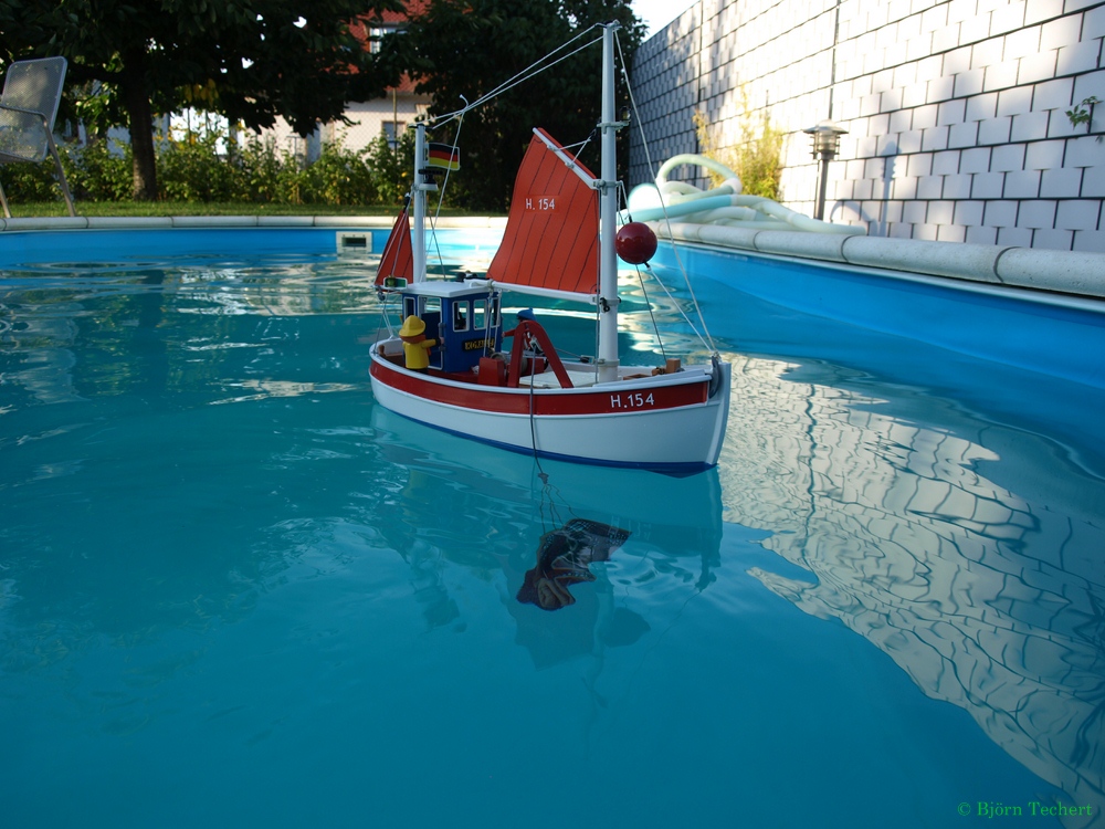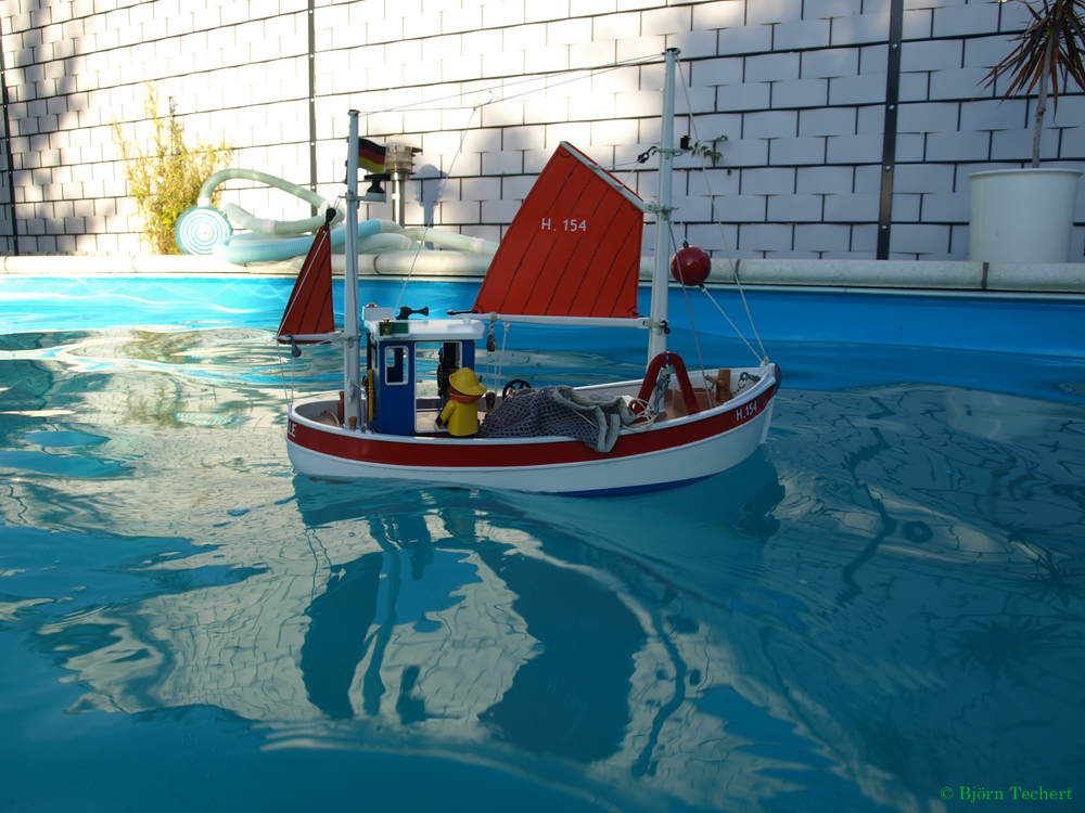 Ja gibt doch nichts besseres als mit einen Schiffchen im Pool.
