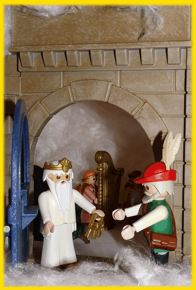 und der heilige Petrus nahm ihn und hing ihn neben seinen Sessel auf.