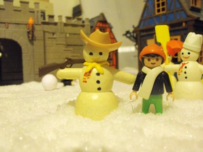 Berni, der Enkel des Hufschmieds Michel, der Bäckereibub Billy und sein Westernmann Tja, klein Timmi ist leider nicht fertig geworden und zum Schluss noch ein Schneemann Gruppenbild Ich hoffe, der etwas andere Playmobil "Männchen" Beitrag findet gefallen.