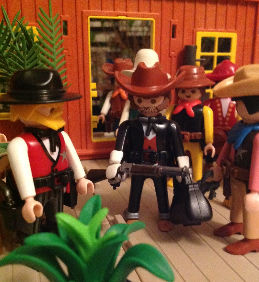 "Hallo Fremder" sprach der Sheriff den Mann an "interessante Waffe die Sie da haben, wer sind Sie und was wollen Sie hier?"