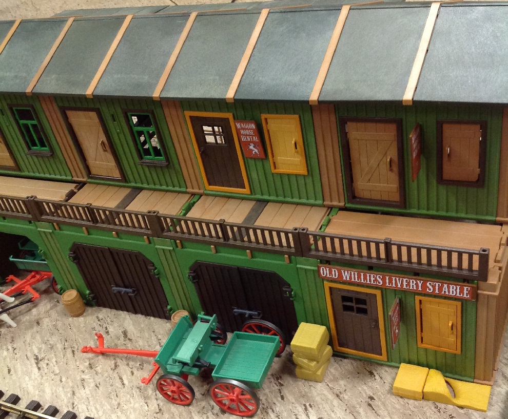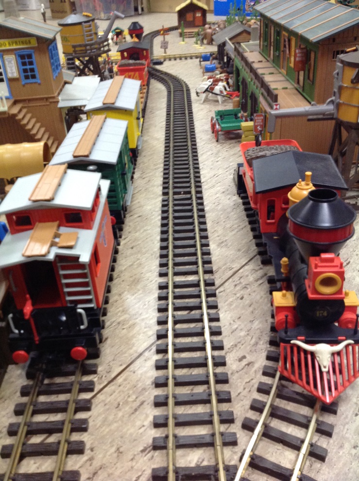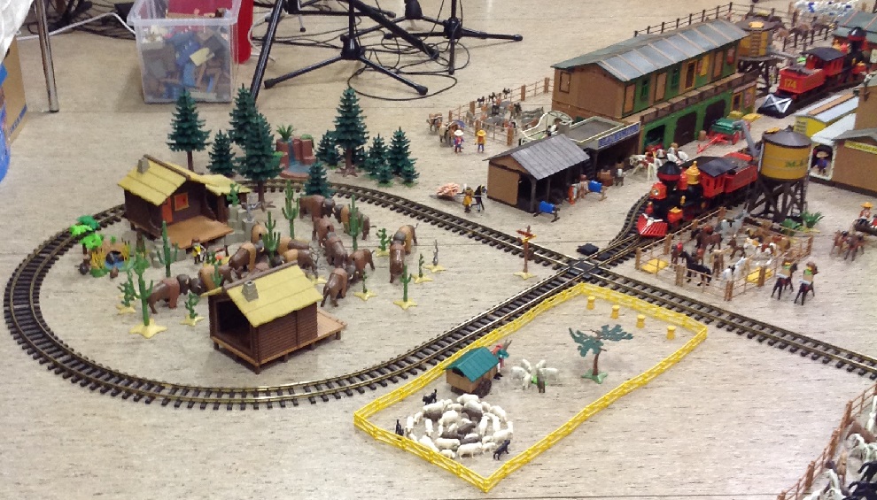 Gestern haben Playmo-Fritz und ich aus Spaß eine kleine Western-Stadt aufgebaut, da wir am Freitag Abend die Western-Bahn aufgebaut und getestet haben.