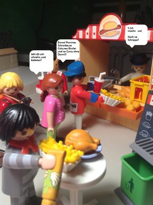 Süß genacht. Aber Wilbur hatte doch keinen Bart, wenn ich mich richtig erinnere, der kleine Vampir war schwarzhaarig und ... Vampire essen doch keine Pommes frittes...