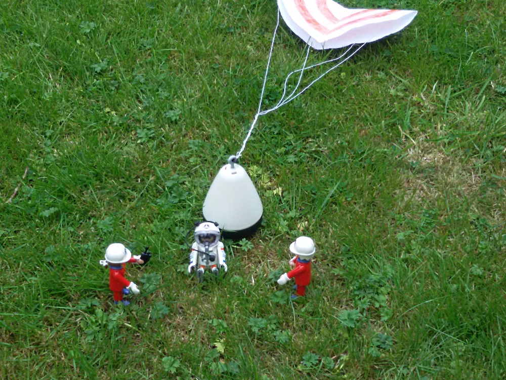 ein Making-off von der Kapsel habe ich nicht, aber das ist eigentlich nur die Spitze von der Playmo-Rakete und als Boden habe ich eine Abdeckung von einem Fernglas benutzt. Ich kann morgen gerne nochmal Bilder von den Einzelteilen machen, wenn du möchtest. :smile