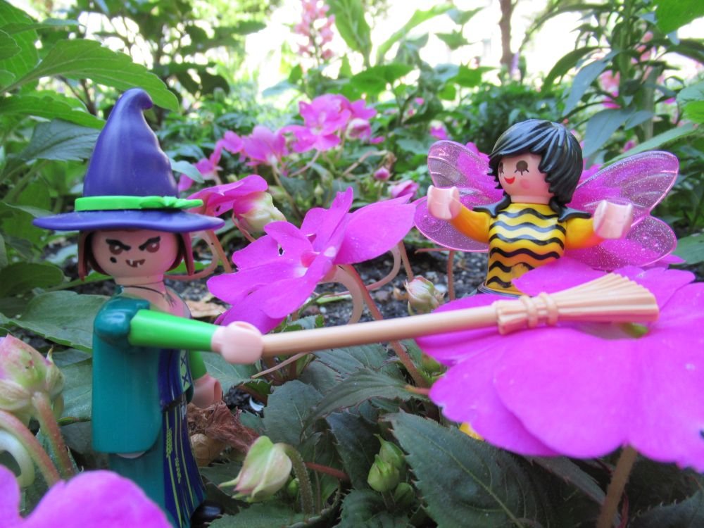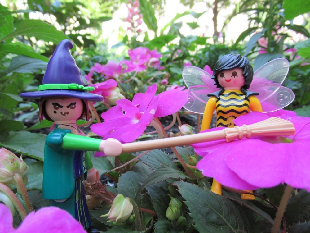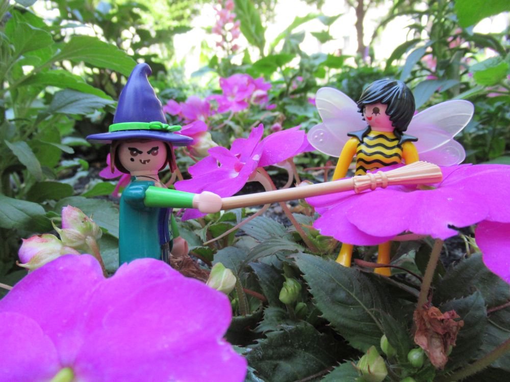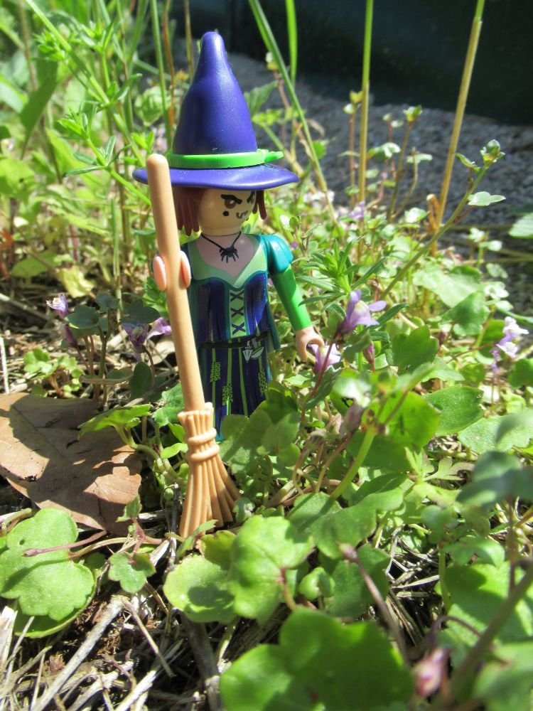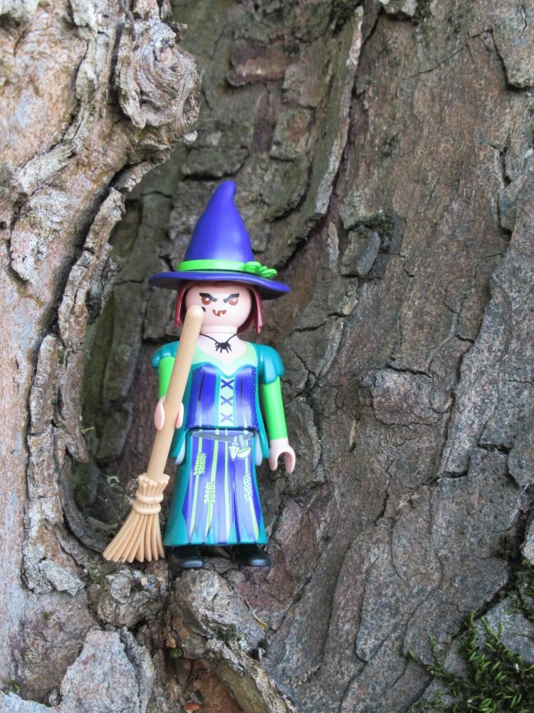 Und spielt sie mit ihrem Hexenbesen!