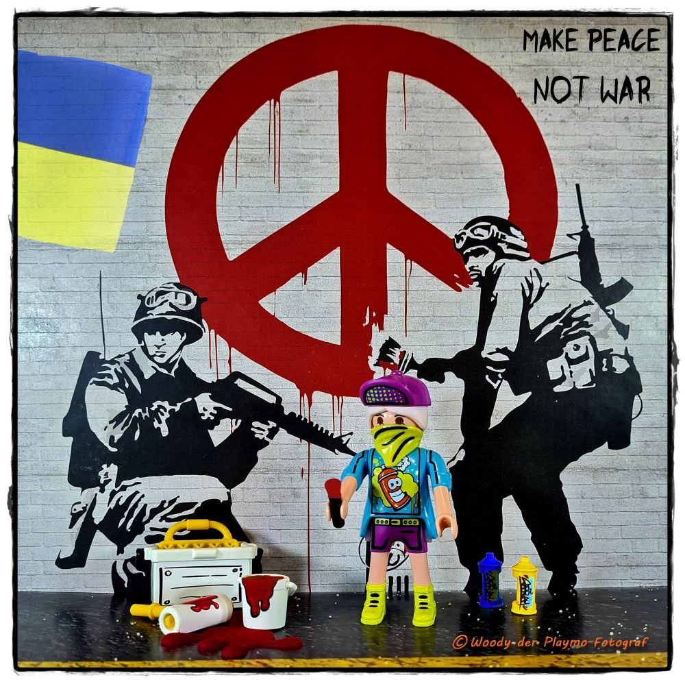 Darunter sind einige Fotos, die mit Playmobil (auch die mit den Noppen, etc.) dargestellt sind.