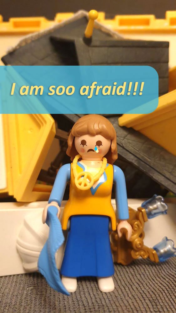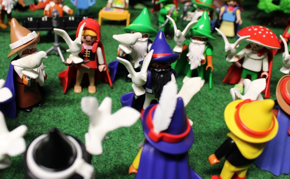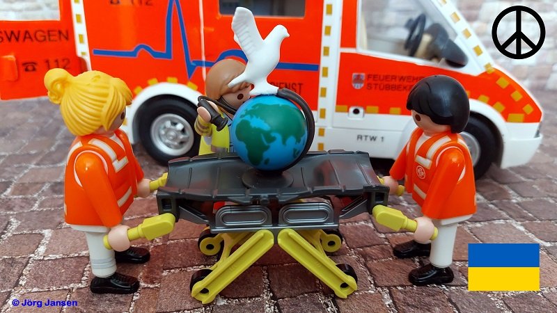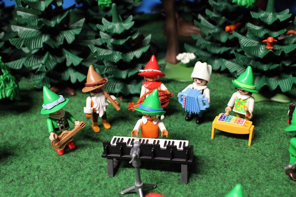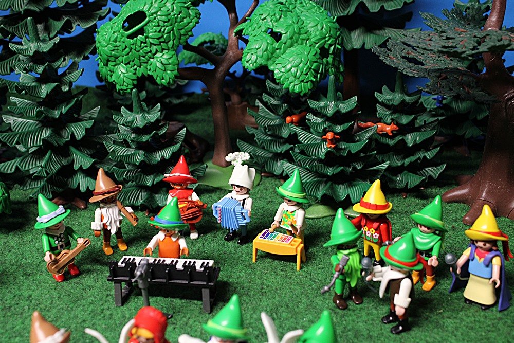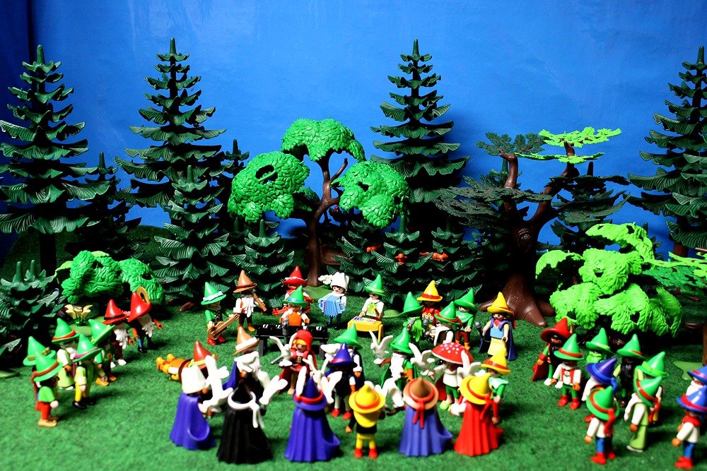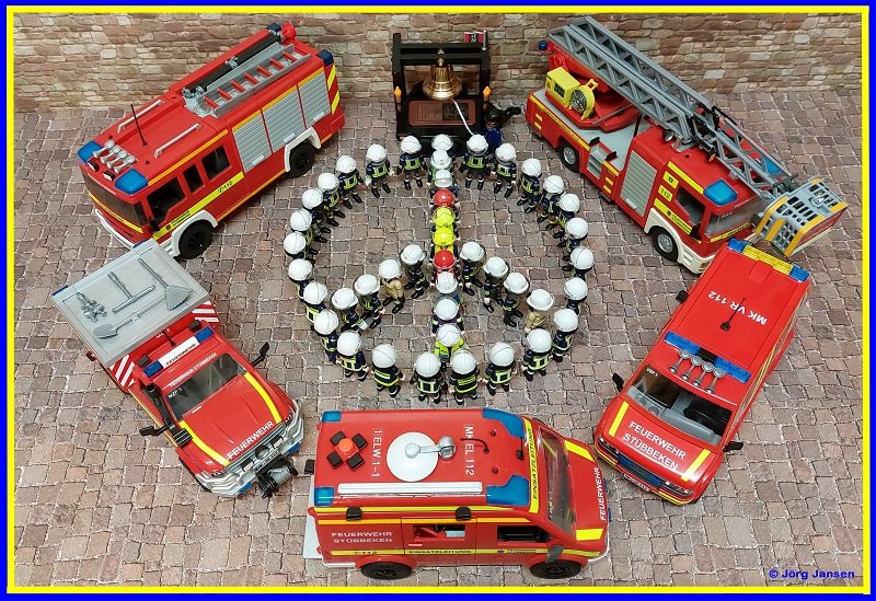Darunter sind einige Fotos, die mit Playmobil (auch die mit den Noppen, etc.) dargestellt sind.