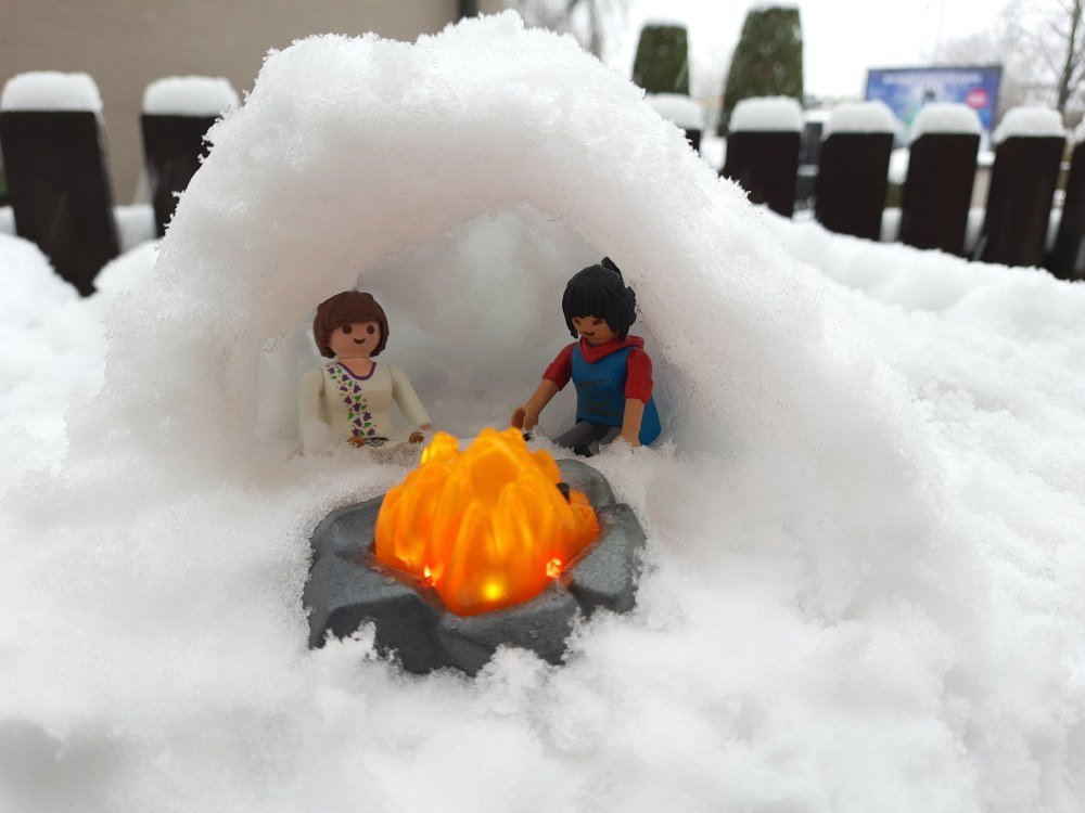 Klicky-Lee baut Schneehütten.