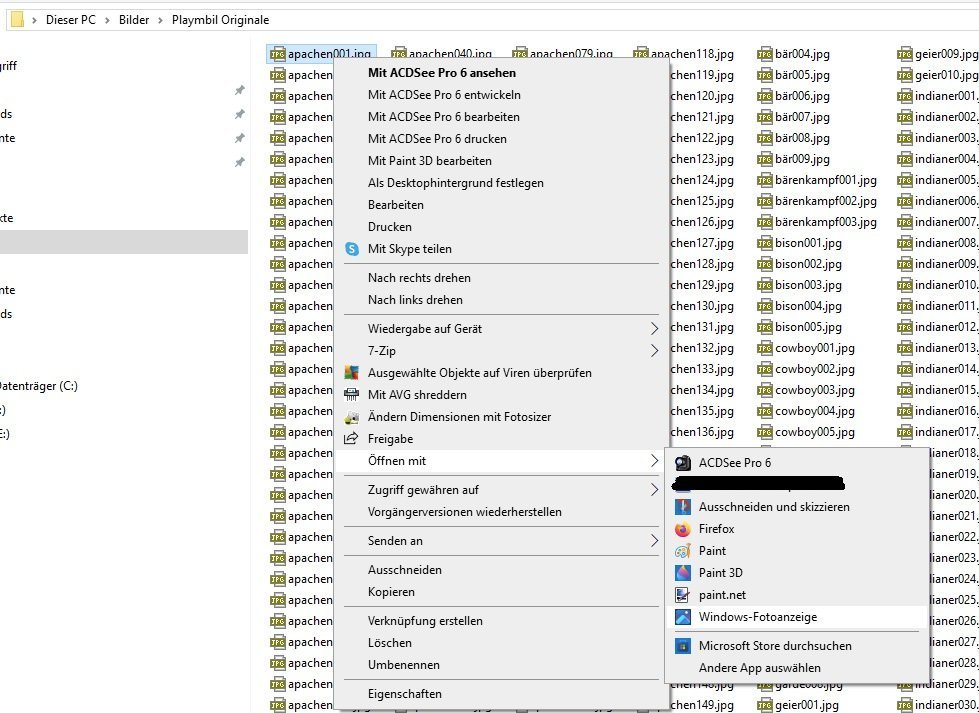 Rechte Maustaste drücken, Option „Öffnen mit“ → Windows Fotoanzeige wählen