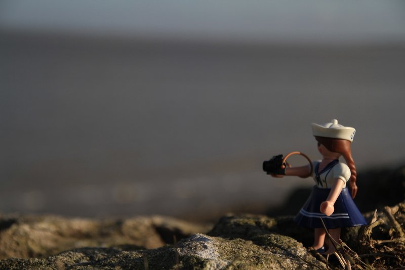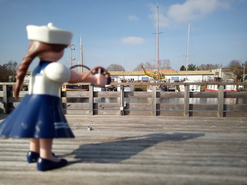 Meine Begleitung hat sich auf die Schnelle im Freien mal eben maritim umgezogen.