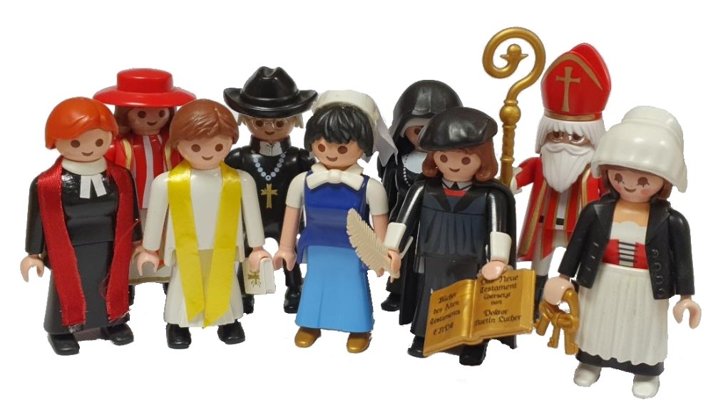 Den Anfang macht eine der jüngsten "geistlichen Figuren": Martin Luther. Eine Auftragsarbeit für die Nürnberger Touristeninformation im Vorfeld des Lutherjubiläums. Die Erstauflage war innerhalb weniger Tage ausverkauft, und meines Wissens ist der Luther heute der Klicky...