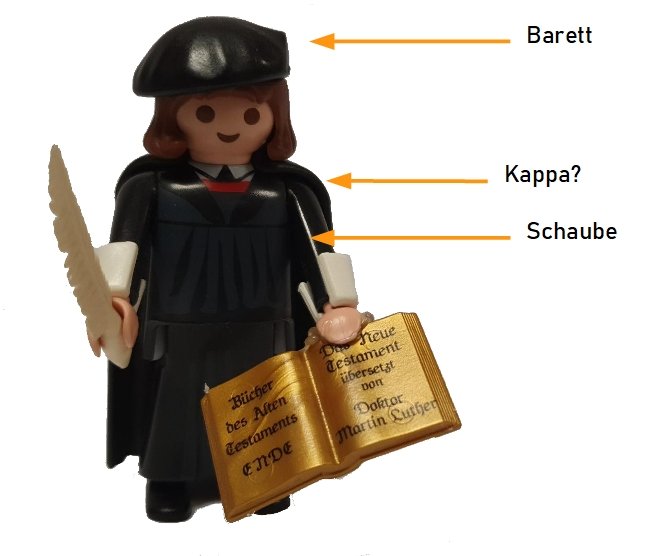 trug Luther vermutlich als Zeichen, daß er Professor war. Ob der Umhang der Figur tatsächlich eine