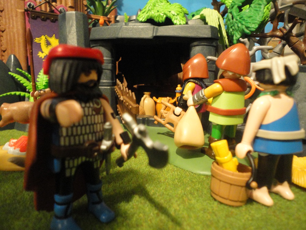 Sein Ton trieb die Männer wie willenlose Lämmer, bepackt mit Waren vom Brandschatzen, in die Höhle.