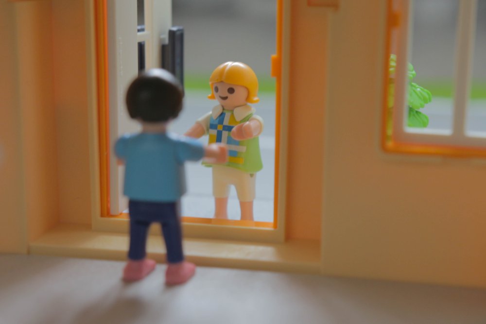 Nebenbei räumt er seinen Schulranzen aus und schaut schonmal, welche Hausaufgaben er machen muss. Da klingelt es plötzlich an der Tür.