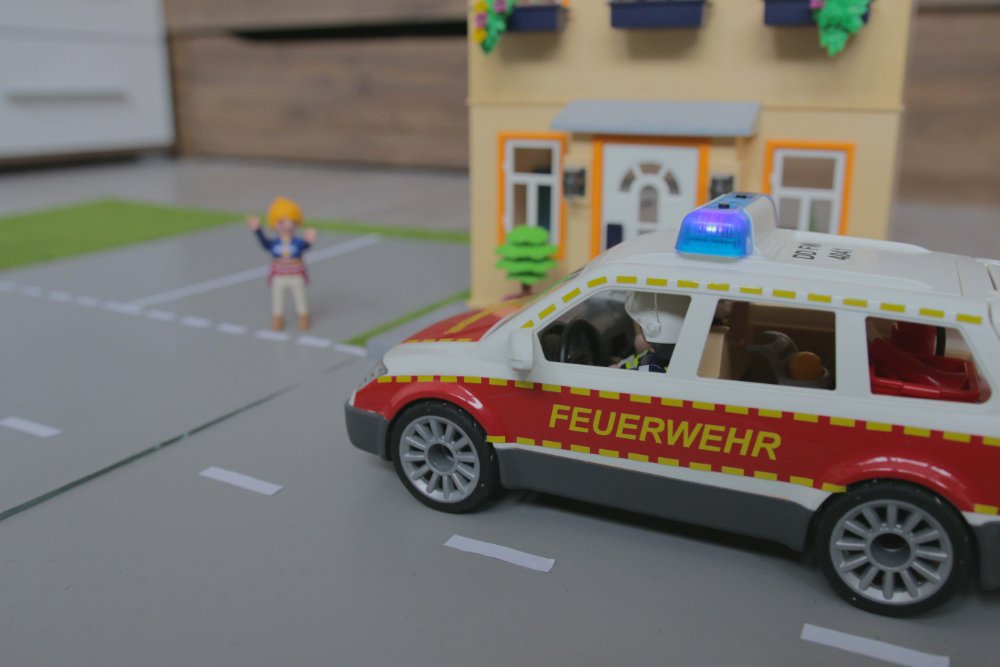 "Ich bin auf der Hauptstraße und stehe vor der Hausnummer Sieben. Da geht ein Rauchmelder und es riecht auch verbrannt."