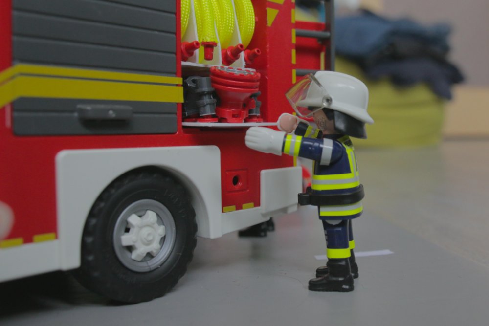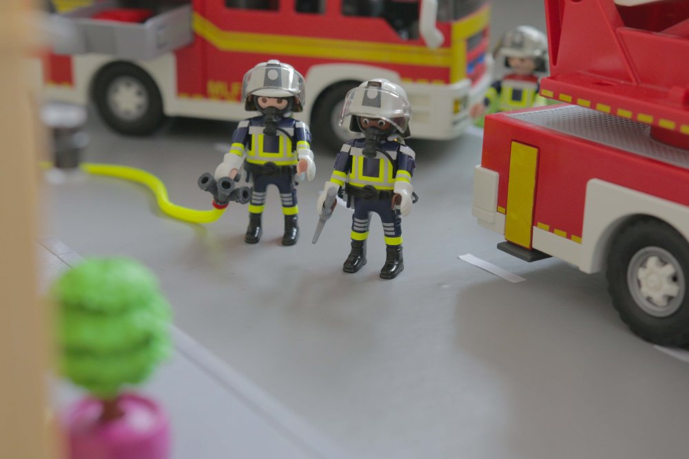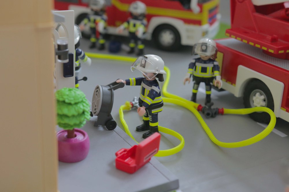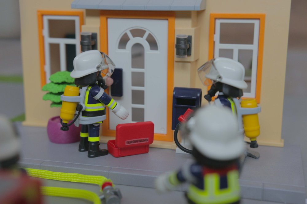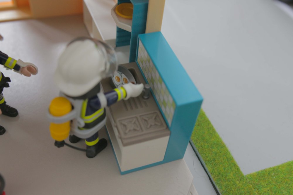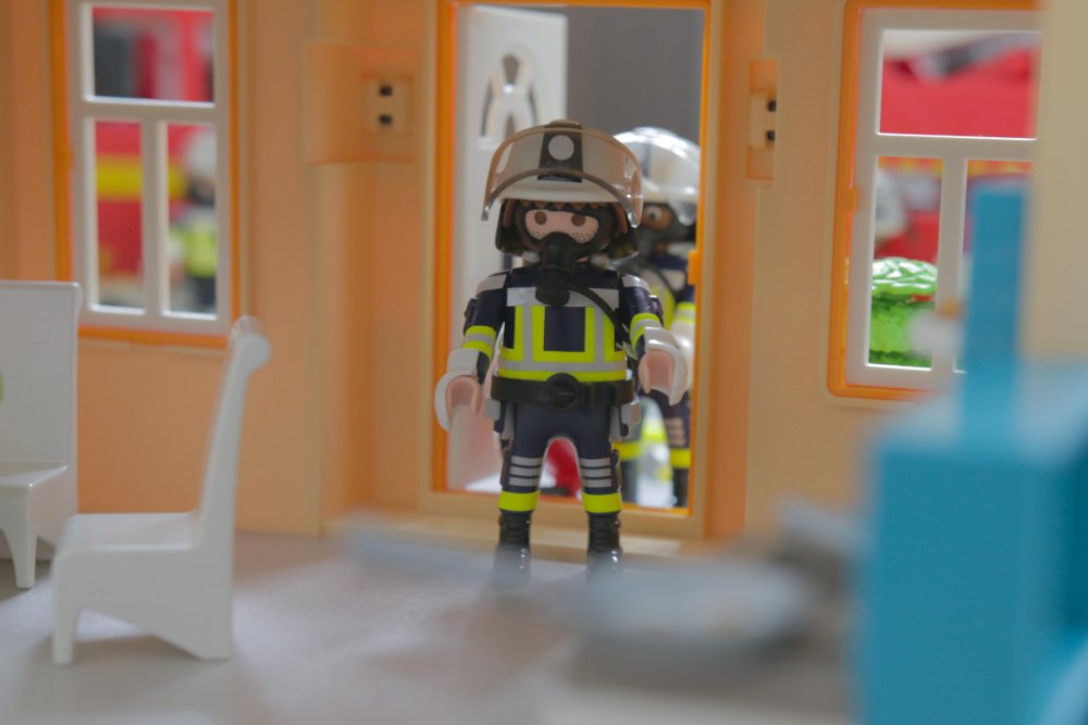 “Vom Geruch und dem, was ich durch das Fenster sehe, scheint das hier Essen auf Herd zu sein”, informiert der Zugführer seine Gruppenführer. “Dein Angriffstrupp soll mit dem Kleinlöschgerät reingehen und schauen, ob irgendwo noch jemand ist.”