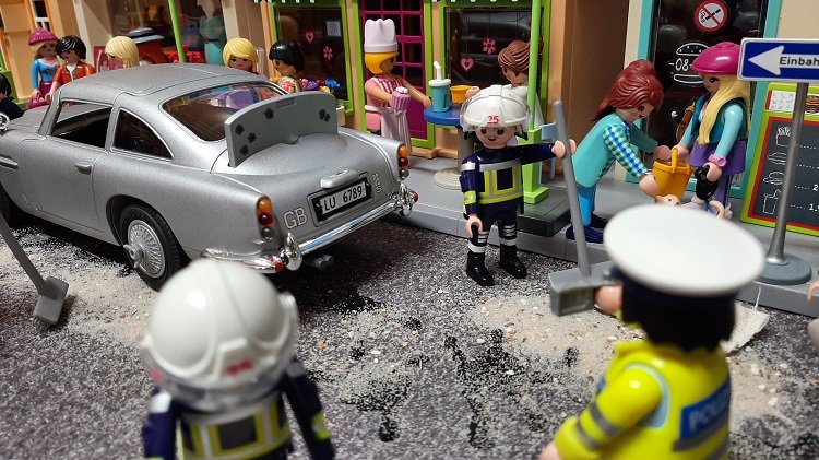 Die Insassen des Oldtimers waren den Polizeibeamten nicht ganz geheuer. So gab der Fahrer an, er sei ein gewisser James Bond und Agent von Themse Lisbeth und seine beiden Mitfahrer hießen Karl Goldfinger und How Ma Tsu. Nur diese beiden konnten sich ausweisen. Am Fahrzeug stellte die Polizei außerdem unterschiedliche Kennzeichen fest. Aufgrund dessen, und weil Herr Bond keinerlei Papiere dabei hatte, sollte er mit zur Halterfeststellung auf die Polizeiwache. Nach einem kurzen Interview mit Lenne TV sollte es eigentlich losgehen doch das war allerdings nicht so einfach da sich plötzlich mehrere Damen um den angeblichen Agenten drängten und Autogramme verlangten. Damit das Ganze nicht eskalierte wurde diese Autogrammstunde von den Beamten geduldet bevor er im Streifenwagen Platz nehmen durfte.