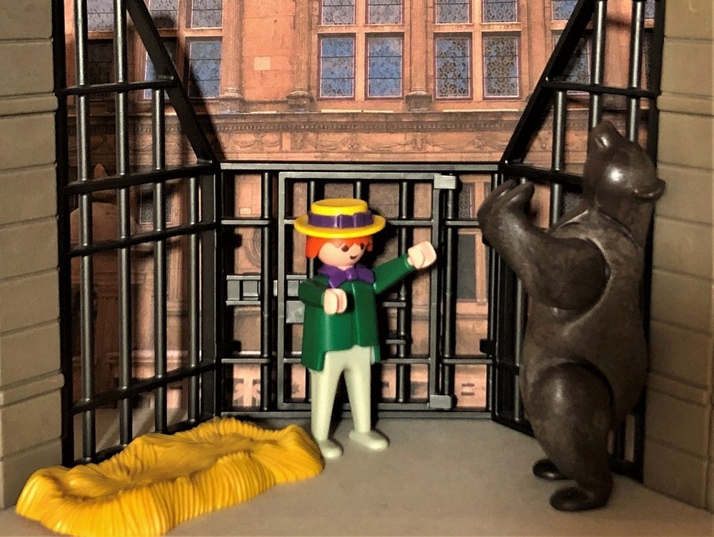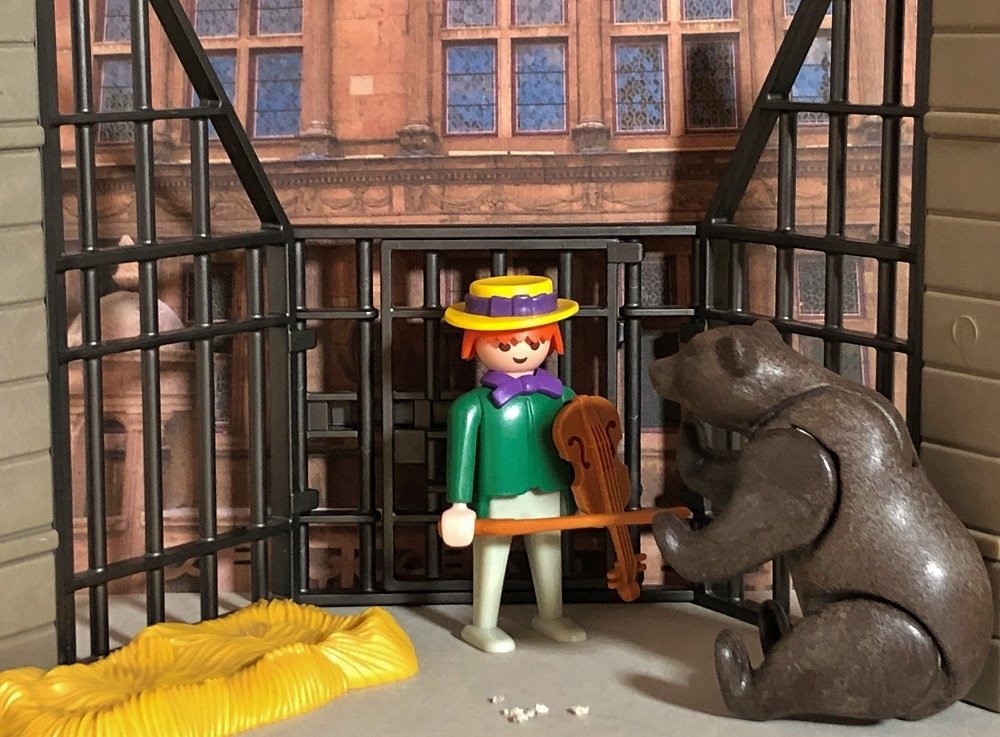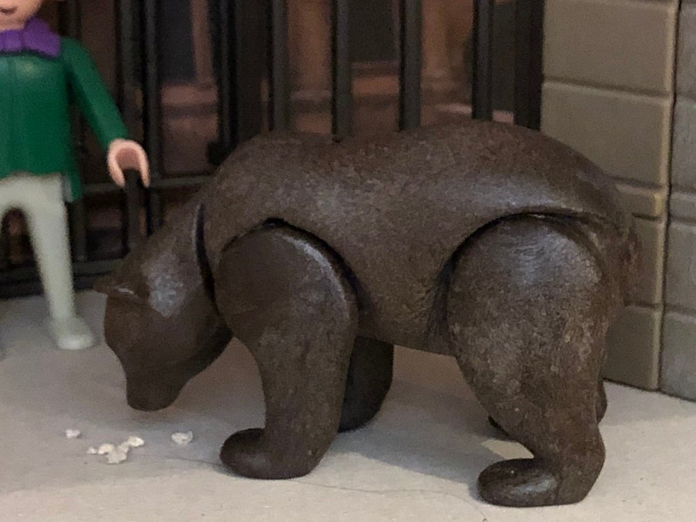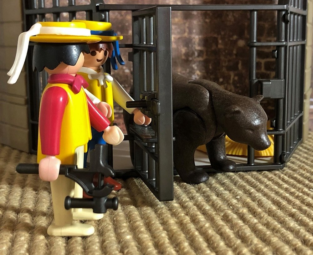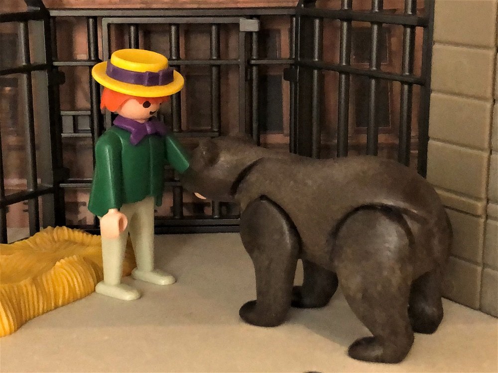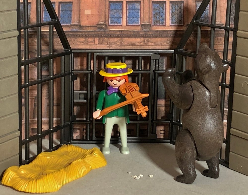 Als ihr das Herz wiederkam, sprach sie: „Damit hast du mich noch nicht gewonnen, du musst noch eins tun, unten im Stall liegt ein Bär, bei dem sollst du die Nacht zubringen; wenn ich dann morgen aufstehe, und du bist noch lebendig, so sollst du mich heiraten.“