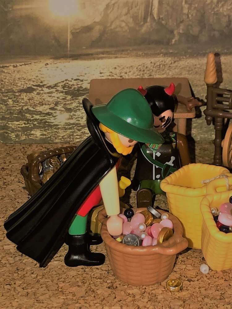 Da holte es ganz gemächlich, als hätte es keine Sorgen, welsche Nüsse aus der Tasche, biss sie auf und aß die Kerne. Wie der Bär das sah, kriegte er Lust und wollte auch Nüsse haben. Das Schneiderlein griff in die Tasche und reichte ihm eine Handvoll; es waren aber keine Nüsse, sondern Wackersteine. Der Bär steckte sie ins Maul, konnte aber nichts aufbringen, er mochte beißen, wie er wollte.