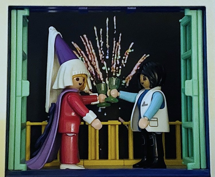 Plötzlich erklang ein schauerliches „Huhuhu, Huhuhu!“ Beide zuckten zusammen und schauten überrascht auf. Fanny fand zuerst ihre Sprache wieder: „Kann das sein, dass du ein Taggespenst auf deiner Burg wohnen hast?“ „Wie kommst du denn darauf?“ „Huhuhu, Huhuhu!“, ertönte es erneut. „Naja, weil es doch gerade Mittag geschlagen hat.“, meinte sie grinsend. Das Grinsen konnte ihr Gegenüber im Moment jedoch nicht sehen. „Das meinst du jetzt aber nicht ernst, oder?“, antwortete Fredeswind. - „Huhuhu, Huhuhu!“ - „Wieso?“, konterte diese. „Taggespenster geistern doch aber um diese Uhrzeit herum.“ „Ach was! Es gibt keine Gespenster!“, wies Fredeswind sie zurecht. Fanny stieß ihr den Ellenbogen leicht in die Seite und sprach lachend: „Aber das weiß ich doch!“ Fredeswind stimmte in ihr Lachen ein.