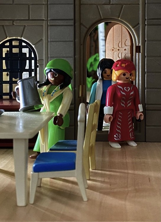 So gesellten sich die Neuankömmlinge zu den beiden anderen. Dienstbeflissen brachte die Wirtin zwei weitere Gläser. Nun wurde natürlich erst einmal auf dieses unverhoffte Wiedersehen angestoßen. Gegenseitig berichteten sich alle, was sie so erlebt hätten. Playmo-Family erzählte, dass sie mit KlickyLee und Coach angereist war. Letzterer wäre aber anderweitig unterwegs um nach seinem letzten Bauprojekt zu sehen. KlickyLee empfahl ihnen doch die Moschee mit der angeschlossenen Universität zu besuchen. Playmo-Family hingegen lud sie ein doch später im Schloss vorbeizuschauen, dort würde heute Geburtstag gefeiert werden. Davor könnten sie ja noch durch die wundervolle Parkanlage flanieren.