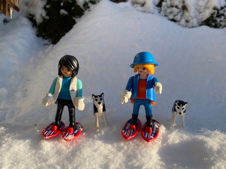 Der nächste Morgen belohnte sie mit einem herrlichen Wintertag. Sie hatten in der Hütte Schneeschuhe gefunden, nahmen die Gelegenheit wahr und machten damit nach dem Mittag eine kleine Wanderung. Die Hunde, stets mit von der Partie, tollten im pulverigen Schnee herum.