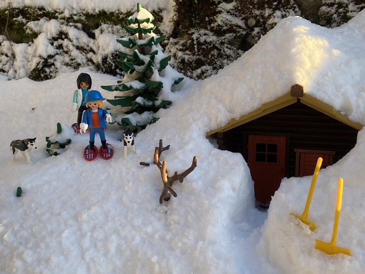 Die Sonne schien jetzt unablässig, daher waren die Temperaturen angenehm und sie unternahmen weitere Touren mit den Schneeschuhen oder den vorhandenen Schlitten.