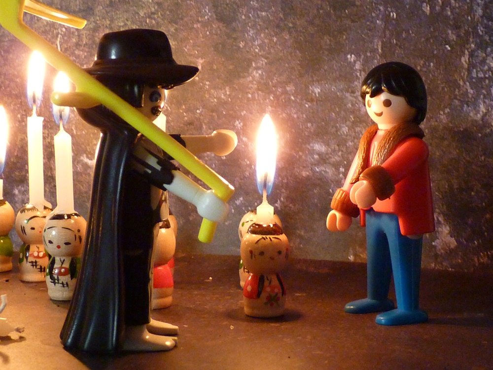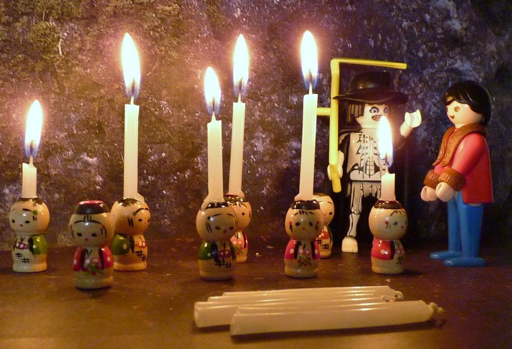 „Siehst du“, sprach der Tod, „das sind die Lebenslichter der Menschen. Die großen gehören Kindern, die halbgroßen Eheleuten in den besten Jahren, die kleinen gehören Greisen. Doch auch Kinder und junge Leute haben oft nur ein kleines Lichtchen.“