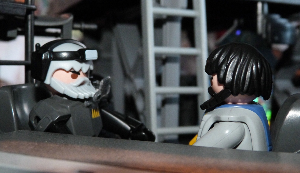 Captain Zork: "Zwei Mann sichern den Transporter. Eliminieren Sie das Ziel, wenn es nicht kooperiert! Schotti - Energie!"