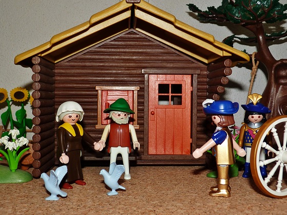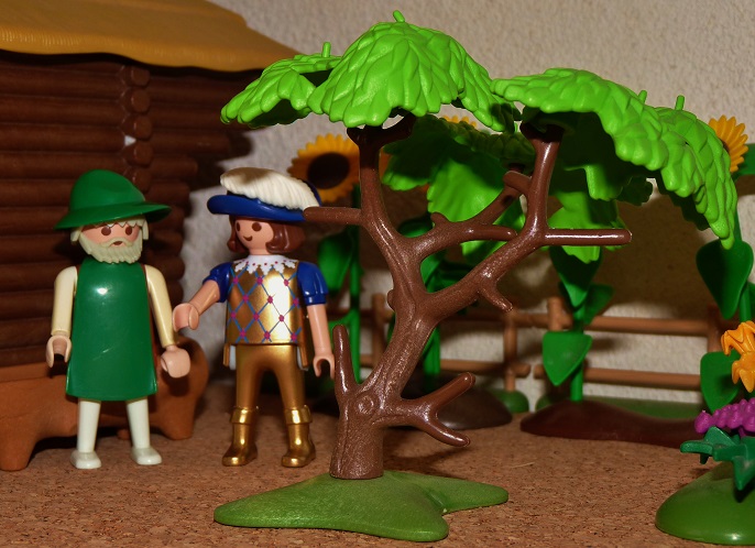 Da luden die Alten den edlen Junker, für den sie den Fremdling hielten, freundlich in ihre Hütte, und er ließ den Wagen mit Kutscher und Bedienten einstweilen in das Wirtshaus fahren.