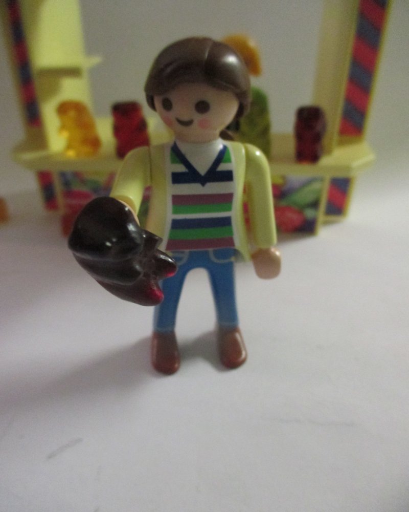 Nachdem sie den Hot Dog gegessen hat, geht sie in den Gummibärchen Shop, in dem sehr viele verschiedene Gummibärchensorten angeboten werden.