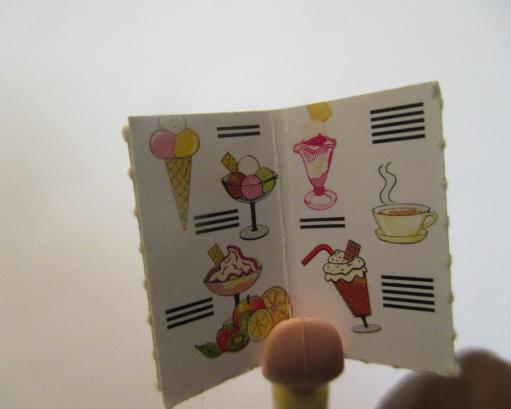 Als sie die Karte sieht, stellt sie freudig fest, dass seit neustem auch Smoothies verkauft werden.