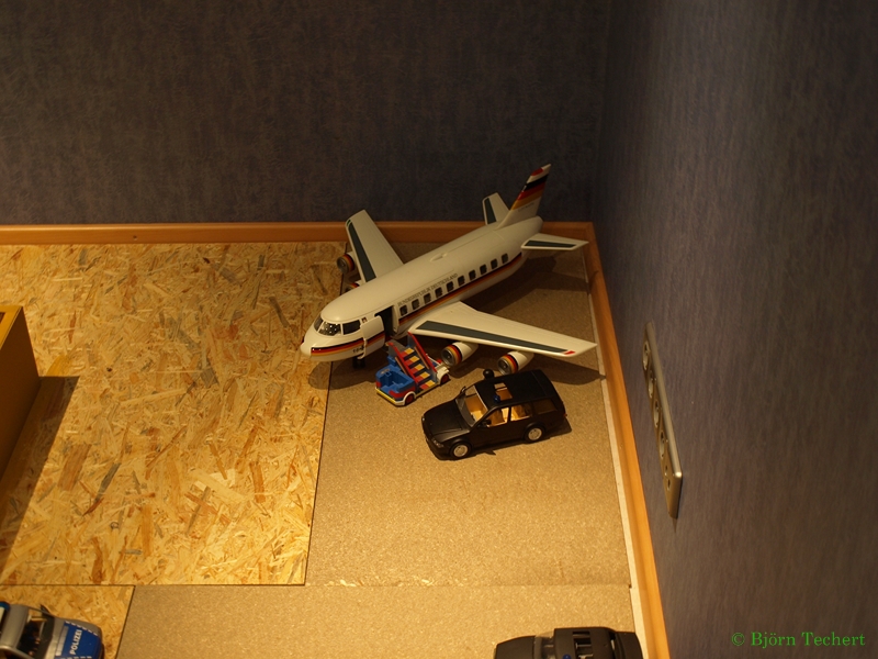 Am Ende ist ein Platz für ein Flugzeug, da steht gerade mal zum Test die Regierungsmaschine.